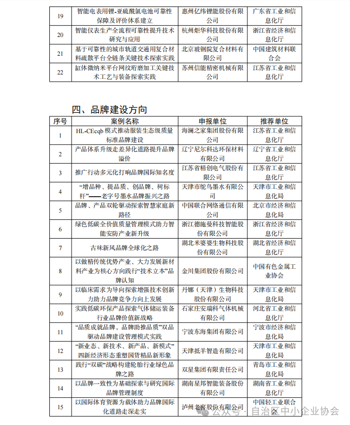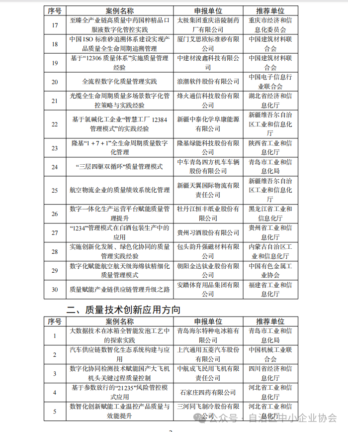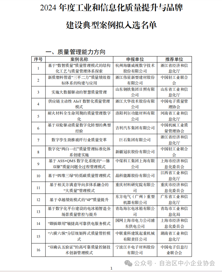 2024年度工业和信息化质量提升与品牌建设典型案例拟入选名单公示